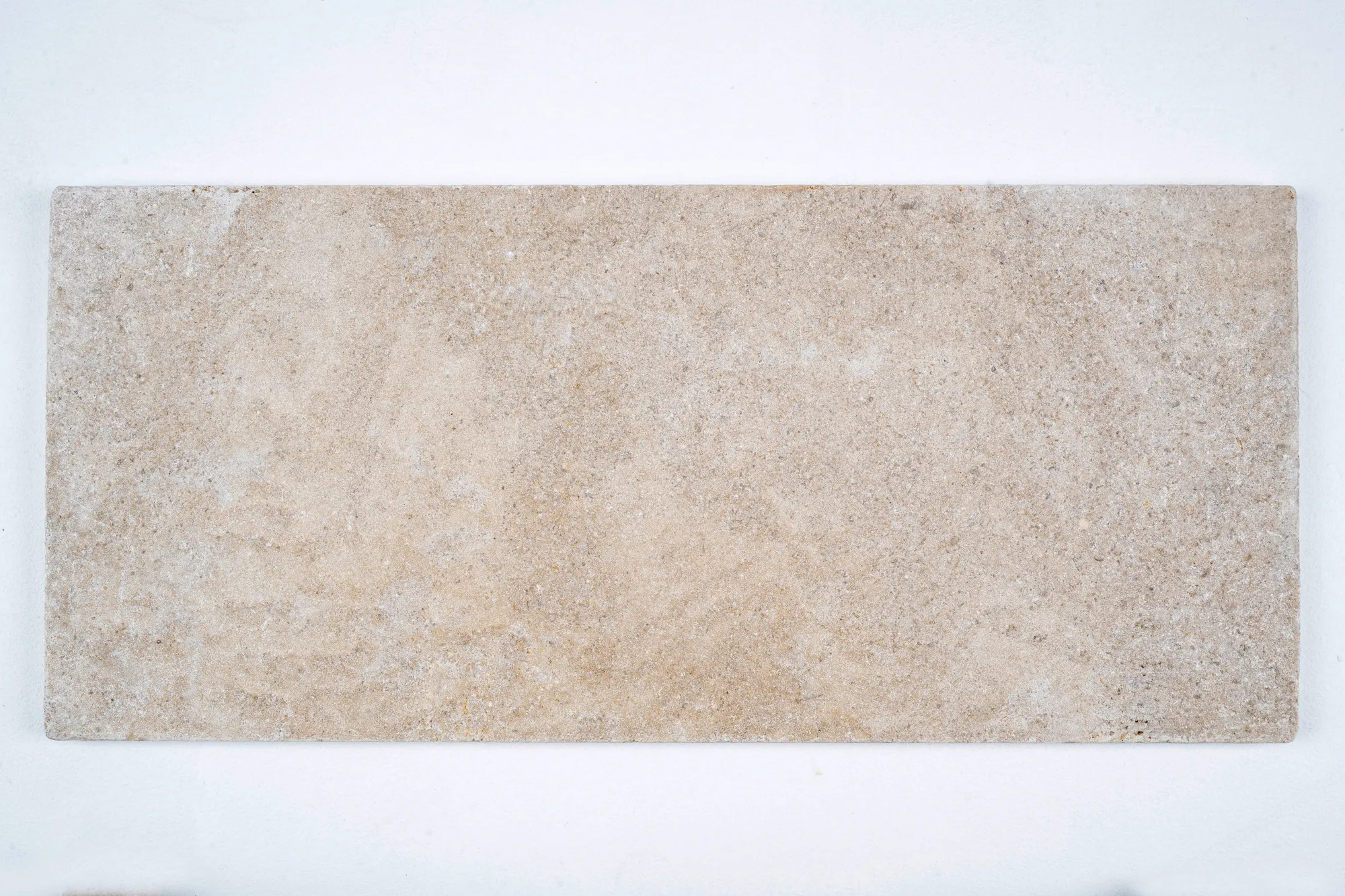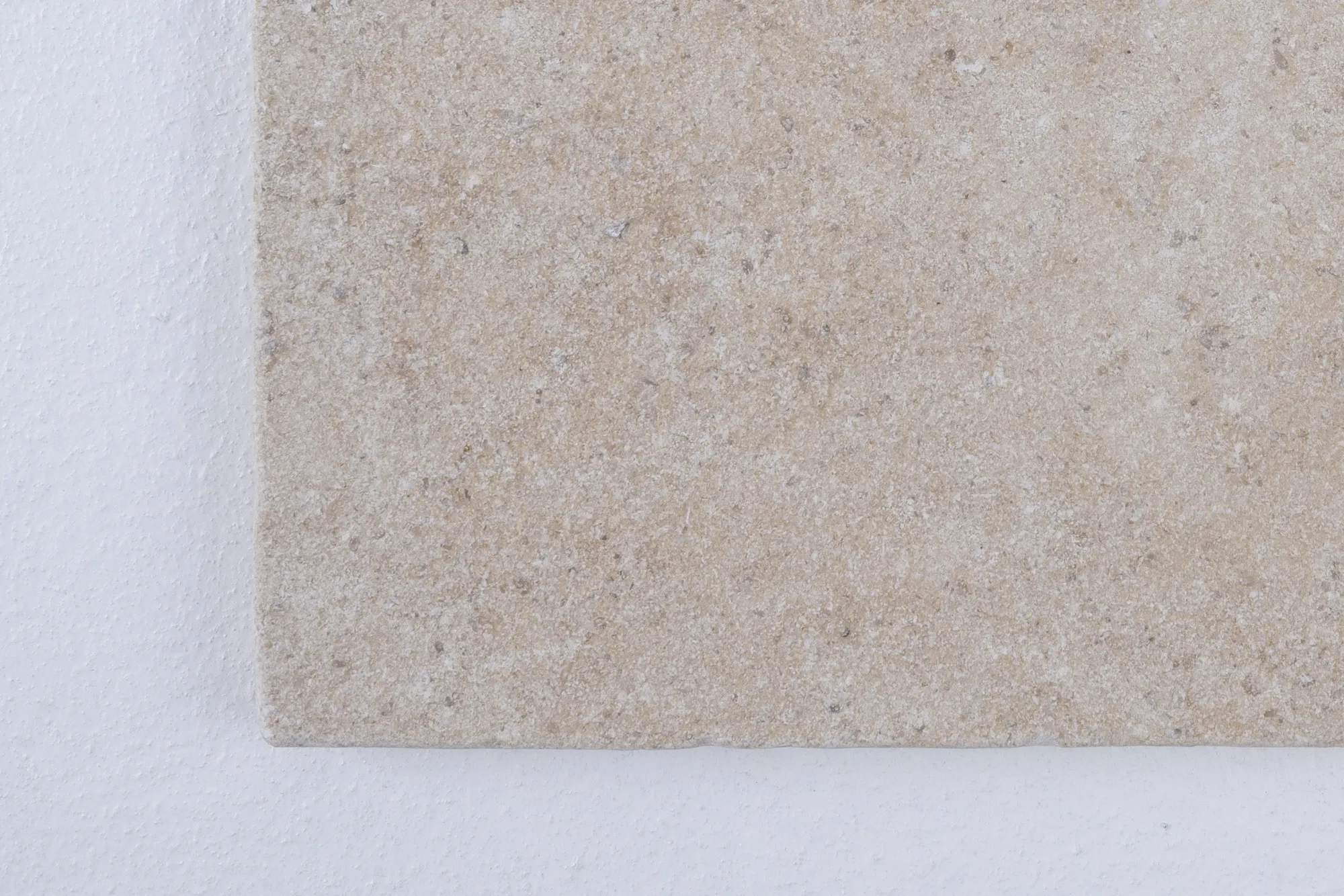 The subtle grain pattern enhances the natural, understated appearance of the limestone, giving it a refined and cohesive look suitable for various aesthetic and functional uses.