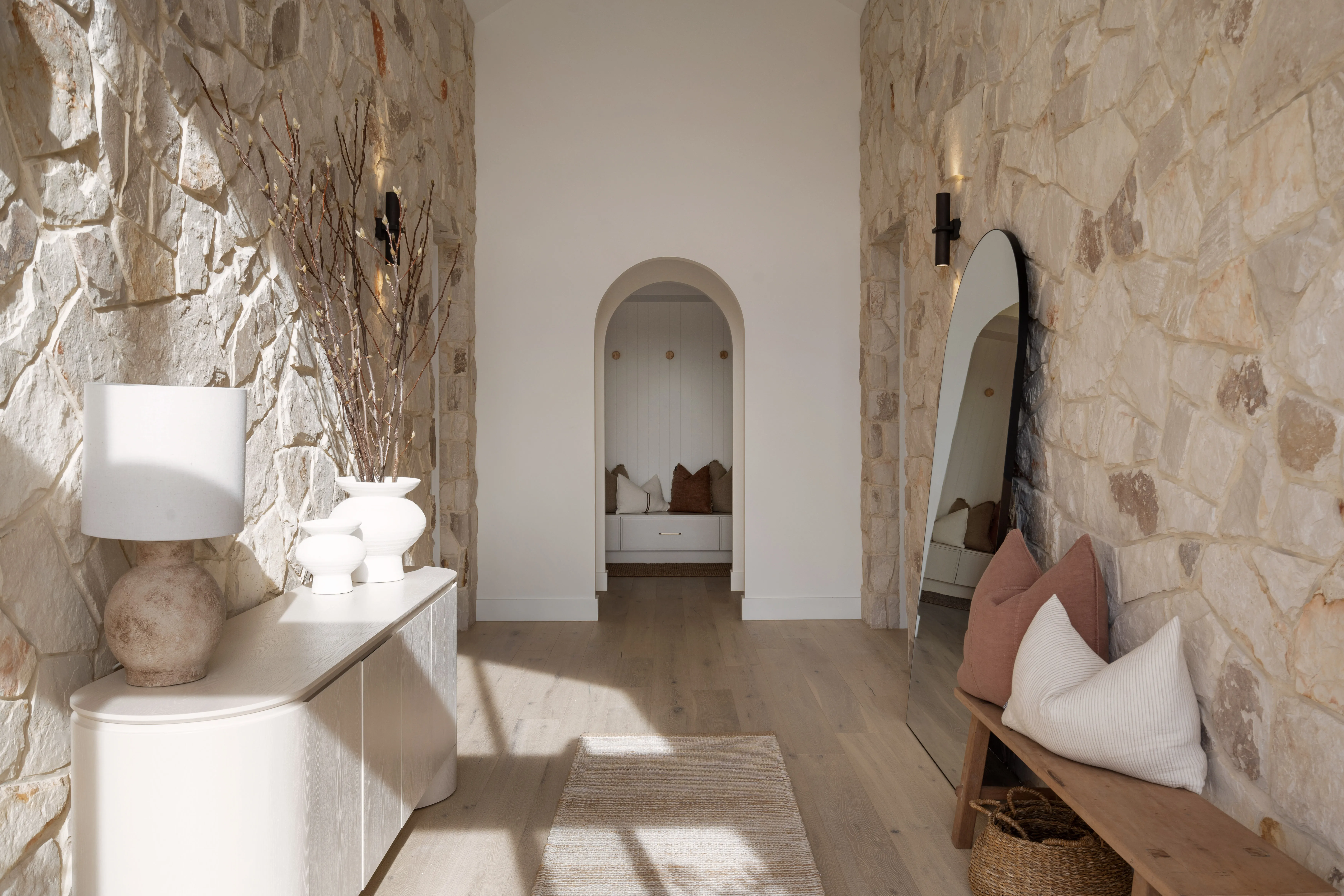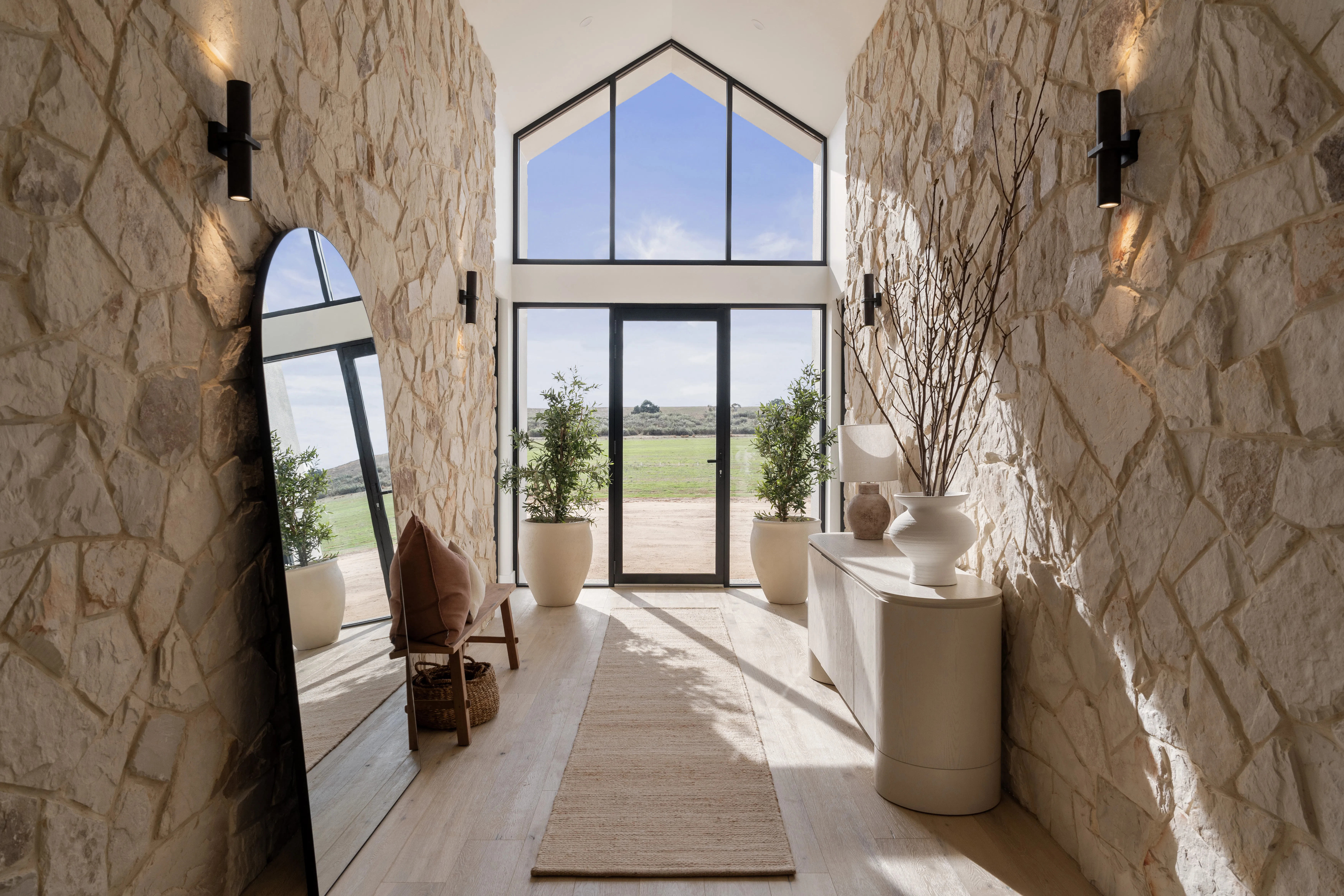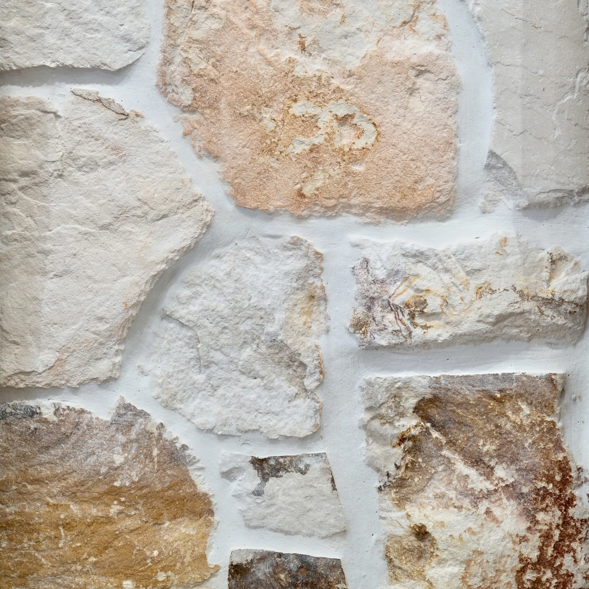 Exuding undeniable charm, the eclectic Australian siltstone pieces combine to form a stonework pattern spiked with dramatic colours and textures.