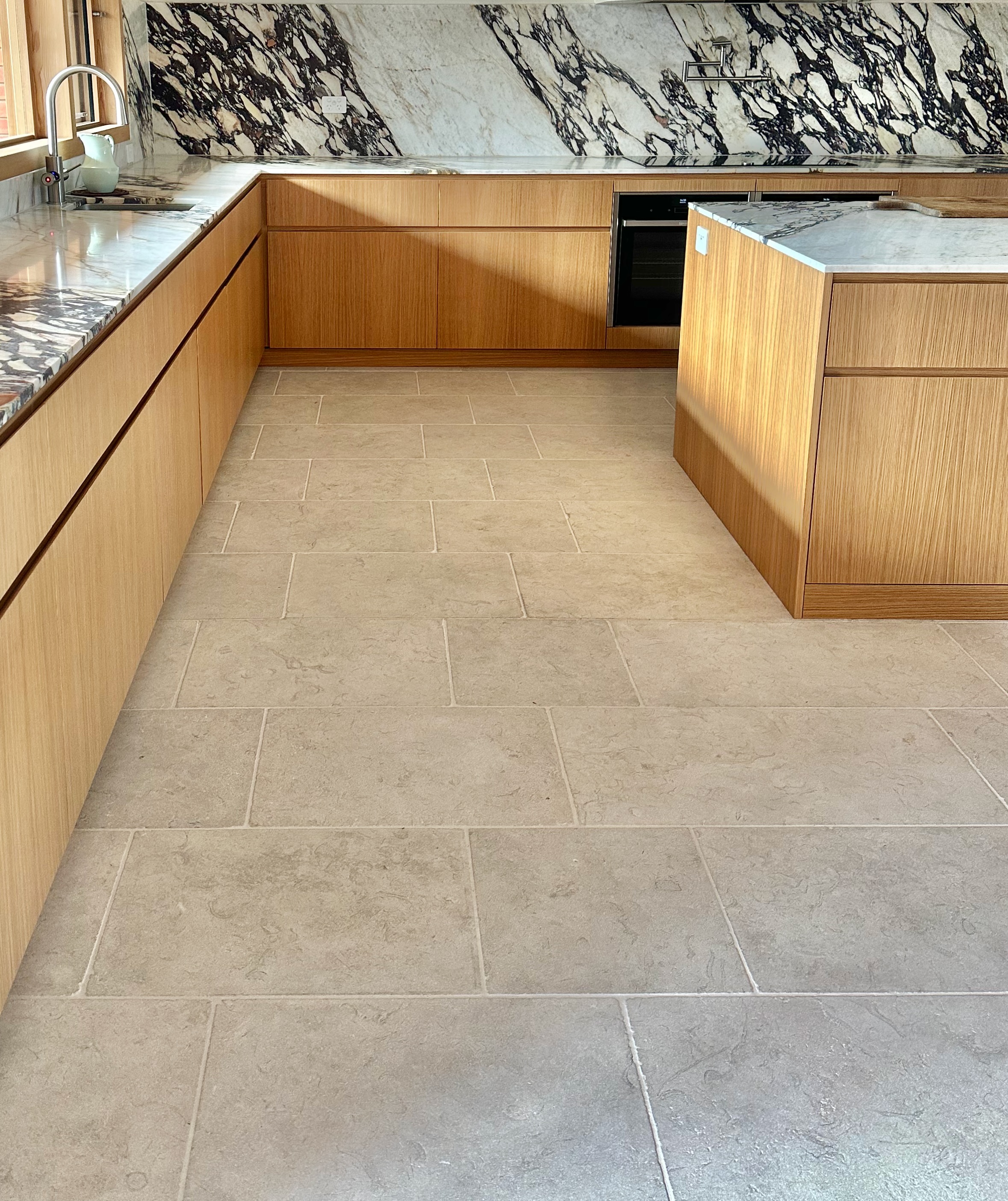 The Milly Limestone features a distinctive appearance characterised by a warm beige hue complemented by subtle chocolate undertones.